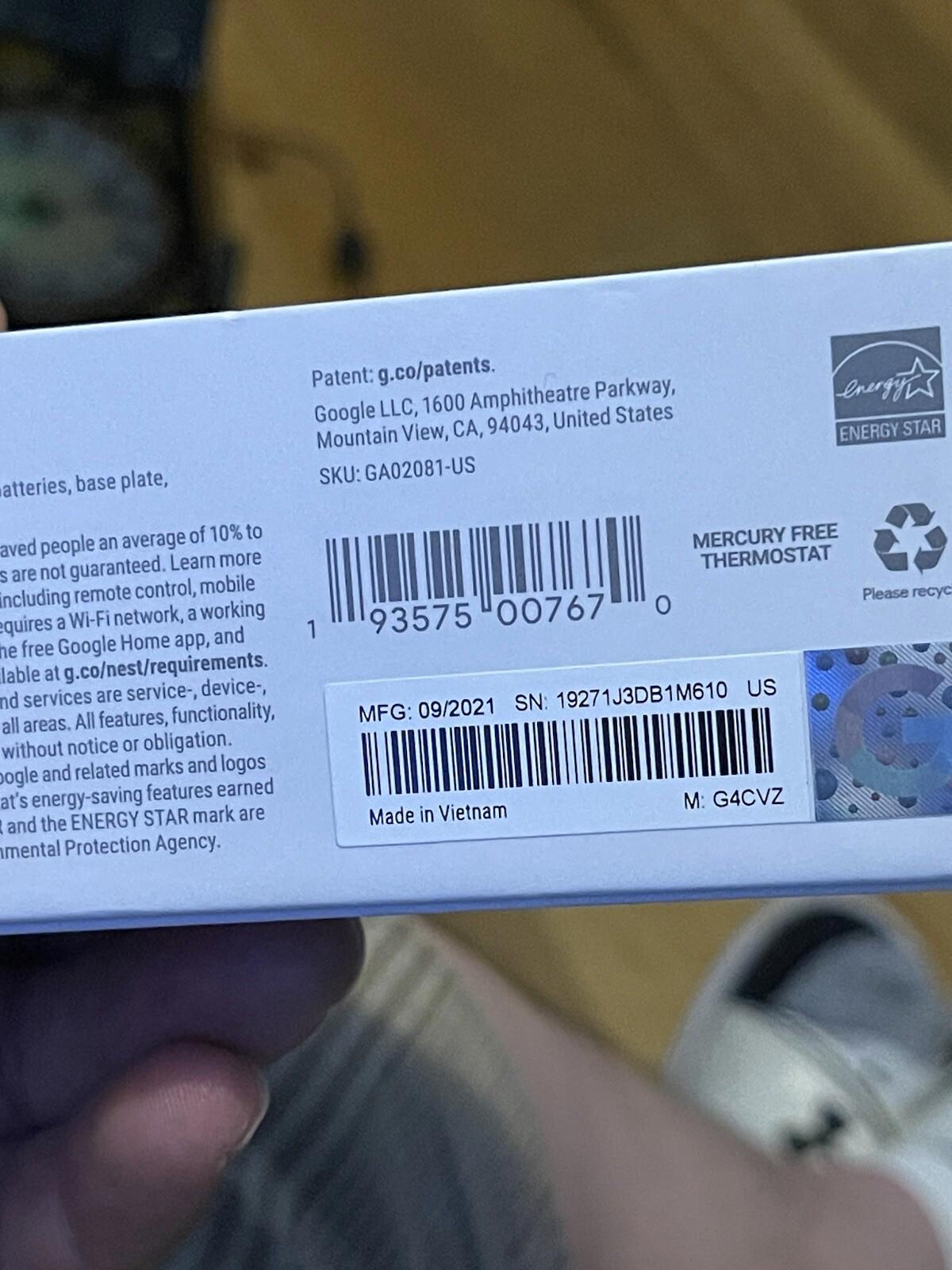 Google Nest Thermostat Sensor Charcoal, open box model G4CV2.